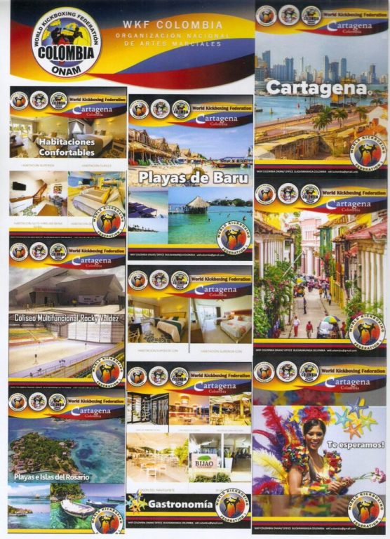 For details about Visa invitations, any requests about airport transfer and more contact our organizing team Mrs. Bianca Daniela BOHORQUEZ , Vice president WKF ONAM COLOMBIA